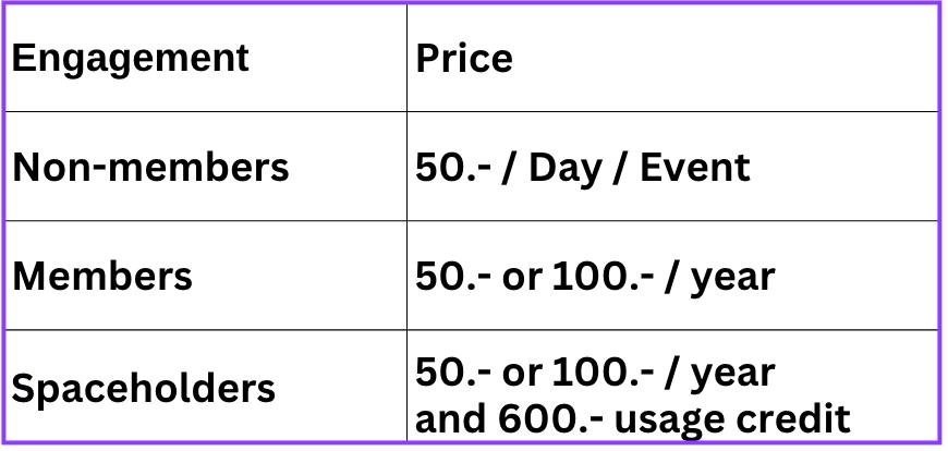 Spaceholders are special members that commit to a certain amount of space usage during a year for which they pay in advance. The paid amount is considered a usage credit, which can also be transferred to the next year or to another member. You will not lose your money if you don’t use the space as much as expected!