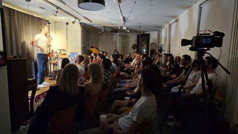 Vassilis stellte seine Comedy-Show Random Facts Exchange Science vor (derzeit in der 2. Auflage)