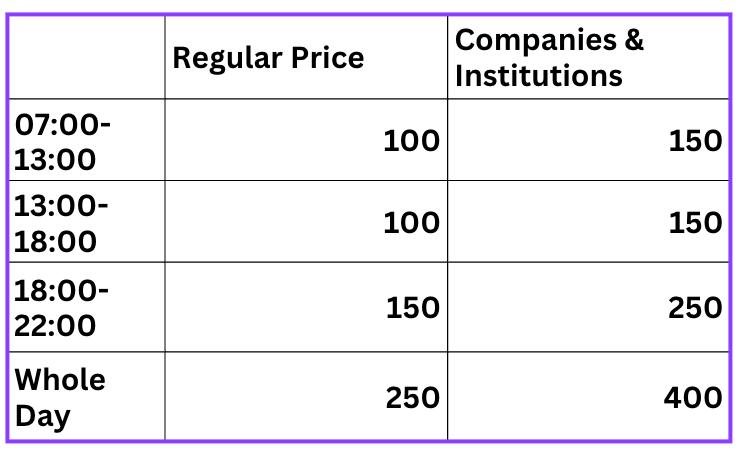 The following are the base prices for using the space at different times of the day. Additional fees apply for different forms of engagement with the association, non-member, member, placeholder (see below).
